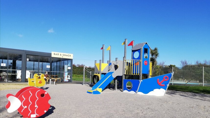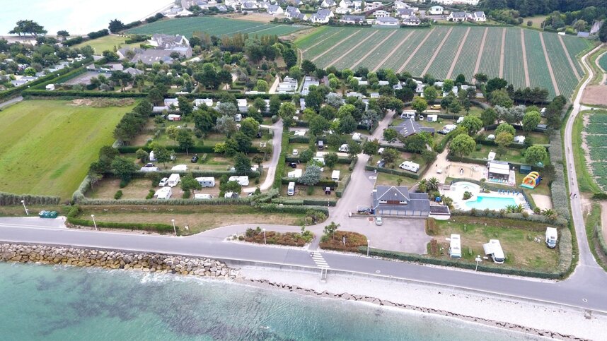 A stone’s throw from the site entrance lies a not very attractive pebble beach, however a five-minute walk takes you to a wide, safe sandy beach. The old town of Saint Pol-de-Léon (2 km) has shops, bars, restaurants and a weekly market.