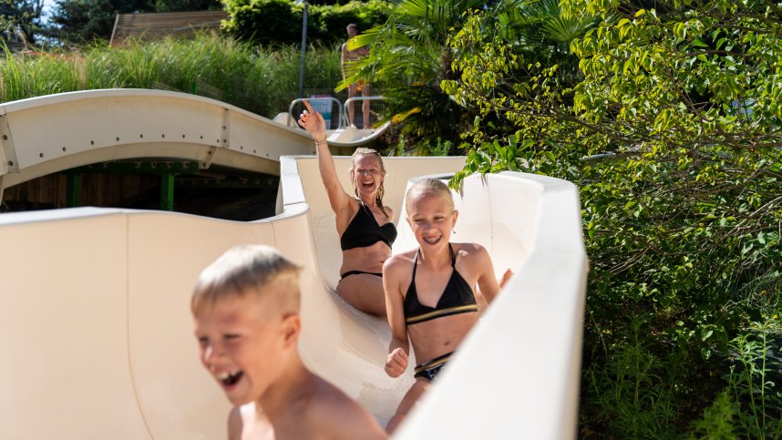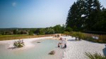 Two toilet blocks are well maintained and include washbasins in cabins and good accessible facilities. Laundry facilities (with plenty of drying lines). Motorhome services. Shop with basics. Bar with TV. Restaurant (Apr-Sept) and takeaway. Lagoon with natural water and fine sand beach. Indoor heated swimming pool. Heated outdoor pool with slides and paddling pool. Chalet with jacuzzi and sauna. Multi-sport terrain. Free WiFi all over the site. Some entertainment off-season and a fuller programme in July and August, including family discos, mussels and french fries parties, concerts and boules tournaments. Walking routes starting from the site. English is spoken.
