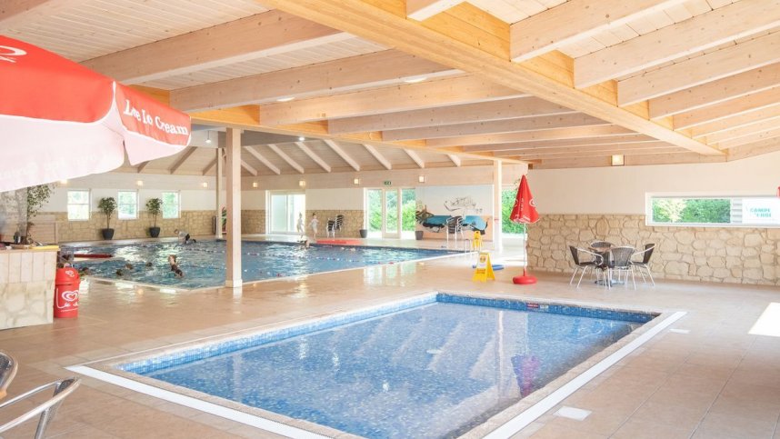Excellent toilet block near reception provides toilets, some washbasins in cabins, and controllable hot showers (€ 0.50). Baby room. Accessible Facilities. Motorhome services. Laundry with washing machines and dryers. Café/bar serving small meals. Covered swimming pool and paddling pool. Tennis. Bicycle and canoe hire. Playground. Entertainment programme for youngsters in season.