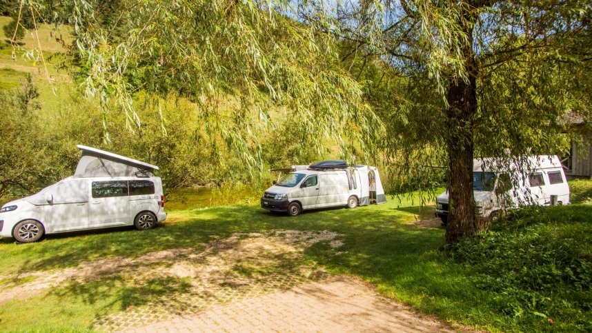 This lovely site is some 6 km. off the main road along a steep wooded valley, through which flows the Doub on its brief excursion through Switzerland from France. If you’re looking for peace and tranquillity then this is a distinct possibility for a short or long stay. A very small friendly site (not suitable for very large units), owned and managed by Christine Lodens, there are just 15 touring pitches. It is ideal for walking, fishing or for the more active, the possibility of kayaking along the Doub. Medieval Saint Ursanne, said to be the most beautiful village in the canton, is some 7 km. In the village you will find 16th-century town gates and bridge and a 12th-century church surrounded by ancient houses. Not too far is Delemont, the Jura’s capital. A local artist, Michel Marchand, runs introductory lessons in watercolour painting.