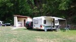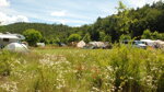 The site is in a small valley with trees all around; there is a river to walk along, fish or simply swim and play in. A lovely lake is central to the site, and the nearby swimming pool is stunning with a large whirlpool and a children’s shallow play pool with wonderful frogs and turtles that spray water.