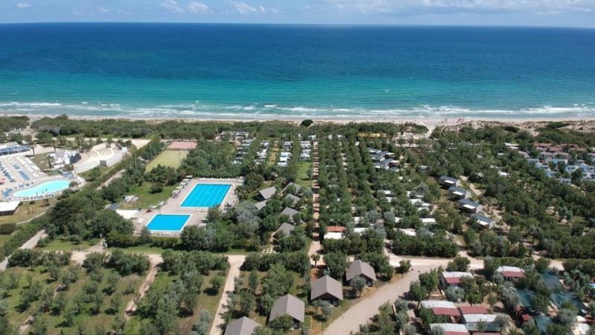 The large Camping Torre Rinalda is situated directly on the outskirts of the town by the same name. On site (measuring 15.5 ha) there are no fewer than 730 touring pitches and 300 motorhome pitches. Olive trees and tamarisks provide the necessary shade. The accommodation units are separate from the camping pitches and there are also private sanitary facilities available. There is a separate glamping area with luxurious rental tents.