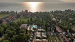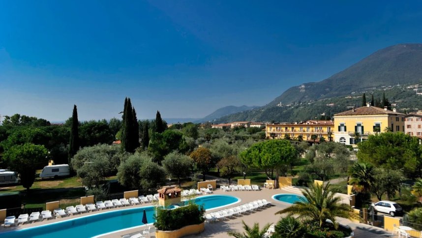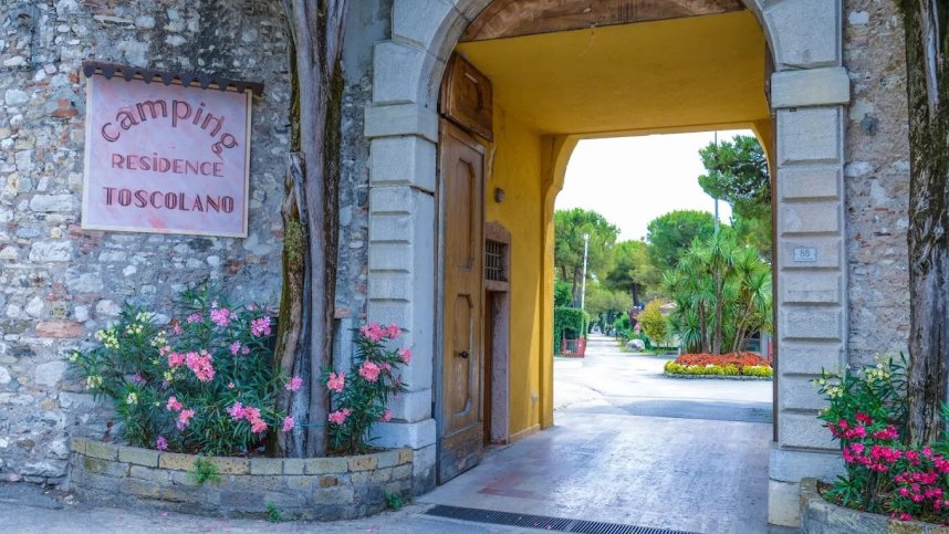 Camping Toscolano is located in Toscolano Maderno, on the western shore of Lake Garda, in the province of Brescia, Italy. It offers a unique setting, being situated within the historical walls of a former 14th-century monastery, providing a charming and tranquil atmosphere among cypress trees. The campsite boasts direct access to Lake Garda, with its own private beach (both sandy and pebbly sections). This offers opportunities for swimming, sunbathing, and various water sports. It's conveniently located with a w walkway leading to the port of Toscolano and within walking distance of the town centres of both Toscolano and Maderno. Guests can enjoy beautiful views of Lake Garda on one side and the Dolomites mountains on the other.