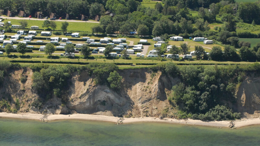 Trelde Næs is a busy and lively site next to a beach accessed via 70 steep, wooden steps. It is one of Denmark’s larger sites with over 500 level and numbered pitches. The 375 touring pitches all have 10A electricity and there are 37 fully serviced pitches with electricity, water, drainage and Internet access. Seasonal units take up the remaining pitches. Pitches are mainly in rows off tarmac access roads on well kept, grassy fields with some shade from bushes at the rear.