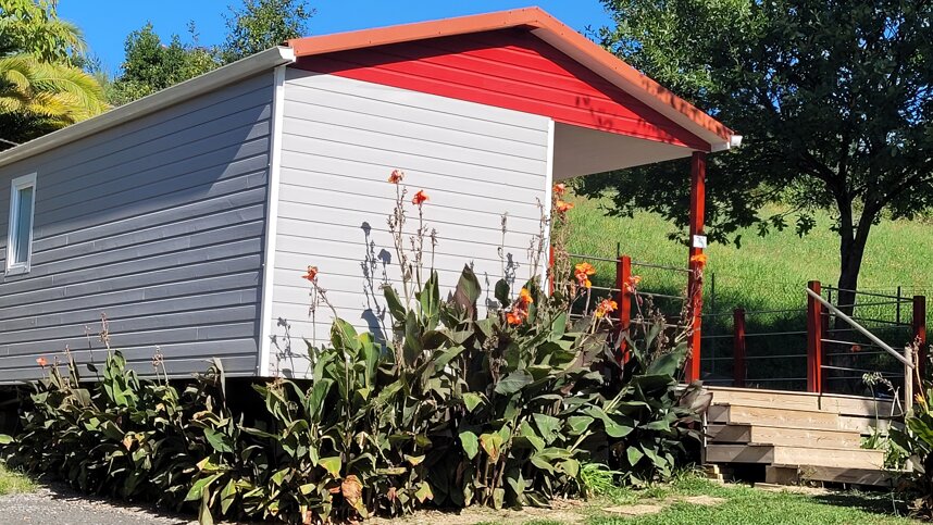 The site has 44 clean and well maintained mobile homes situated at the top end and around the edges of the site.