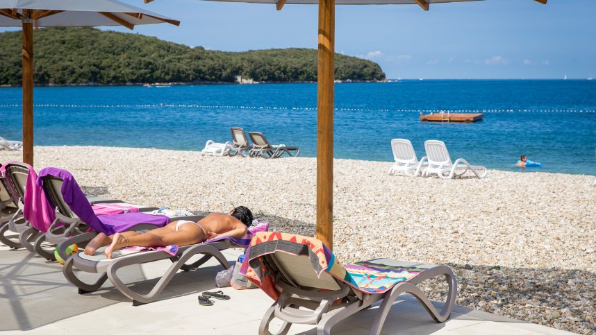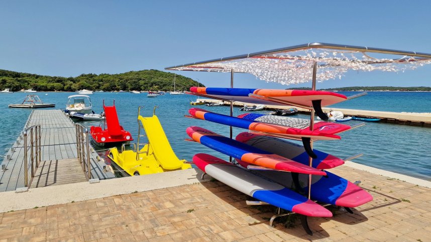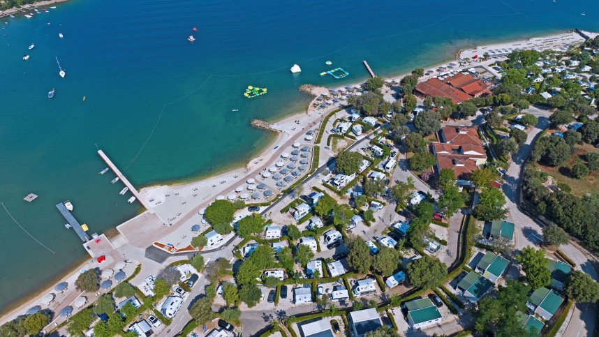 The various swimming areas also have spacious sunbathing areas with sun loungers and umbrellas. On the beach, you will find an activities centre with an inflatable adventure park for small children, Kayaks and stand-up paddle boards available to rent. Other onsite activities include basketball, football, badminton, beach volleyball, tennis, table tennis and a nine-hole mini-golf course available. Children are kept busy during high season with the vibrant Kids’ Club that offers creative crafts and sports tournaments. This campsite has many features that adults will enjoy, too, with on-site wellness facilities, including three saunas, massage and beauty treatments and a whirlpool. Suppose this wasn't enough to keep everyone entertained. In that case, live music is held regularly during the summer months, and bicycle hire is available so you can take a cycle trip along the picturesque Croatian coast.