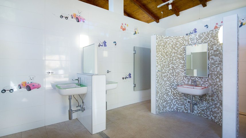 Modern sanitary blocks with hot showers and facilities for children. Accessible sanitary facilities. Washing machines. Motorhome services. Shop and bar (Seasonal). Internet café. Restaurant and takeaway (Seasonal). Outdoor swimming pool (Seasonal). Outdoor fresh water pools, Outdoor fitness. Wellness area with sauna and whirlpool. At reception, you can rent SUP, kayak and pedal boats. Playgrounds. 5-a-side football pitch with artificial turf, table tennis, Tennis, use at extra charge, Badminton, Bouls, multipurpose court, Mini-golf, beach volleyball, Entertainment programme (July/Aug). Children's club, Live music, inflatable aqua park. Bicycle hire. Bicycle service station, Currency exchange. Dogs are not accepted. Free WIFI. 4 Free EV charging points (Charging power 22 kW. Connector Type 2 Mennekes).