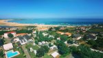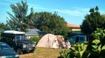 This site is on the edge of the village, about 300 m. from the beach. The sea here can be lively, but at the back of the beach, a calm ria (lagoon) is suitable for younger children and all forms of watersports. The camping area is divided into small enclosures with space for four to six large units each and takes about 150 units in all. They are well-shaded by trees and surrounded by hedges of the most beautiful blue hydrangeas that flower all summer. All pitches have access to electricity (16/25A), with some lighting at night.