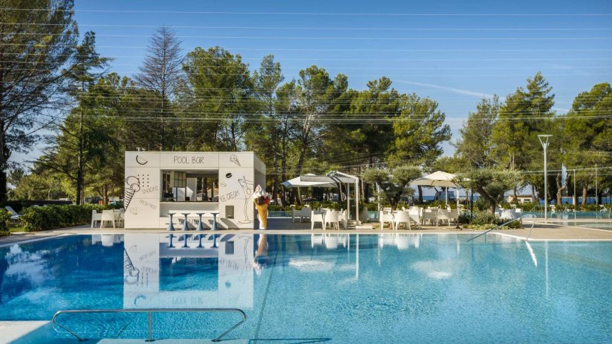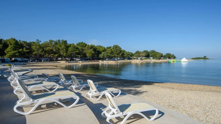 Camping Valkanela is located in a beautiful green bay, right on the Adriatic Sea, between the villages of Vrsar and Funtana. It offers 1,771 touring pitches, all with 10A electricity. Pitches near the beach are numbered, have shade from mature trees and are slightly sloping towards the sea. Those towards the back of the site are on open fields without much shade and are not marked or numbered. Unfortunately, the number of pitches has increased dramatically over the years, many are occupied by seasonal campers and statics of every description and these parts of the site are not very attractive.
