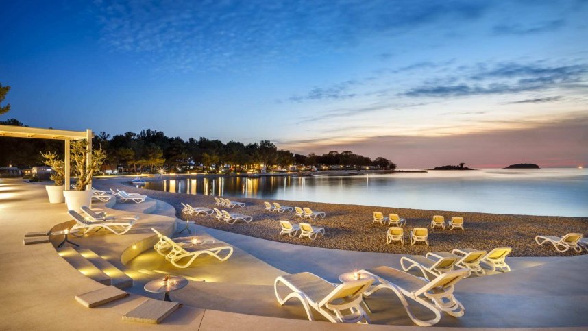 Most numbered pitches have water points close by, but the back pitches have to go to the toilet blocks for water. Access roads are gravel. For those who like activity, Valkanela has four gravel tennis courts, beach volleyball and opportunities for diving, water-skiing and boat rental. There is a little marina for mooring small boats and a long rock and pebble private beach with some grass lawns for sunbathing. It is a short stroll to the surrounding villages with their bars, restaurants and shops. There may be some noise nuisance from the disco outside the entrance and during high season the site can become very crowded.