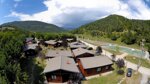 This large holiday village is attractively situated in a wooded valley with cows grazing to one side, their pleasant bells often to be heard. A stream runs below the site, between it and the road.