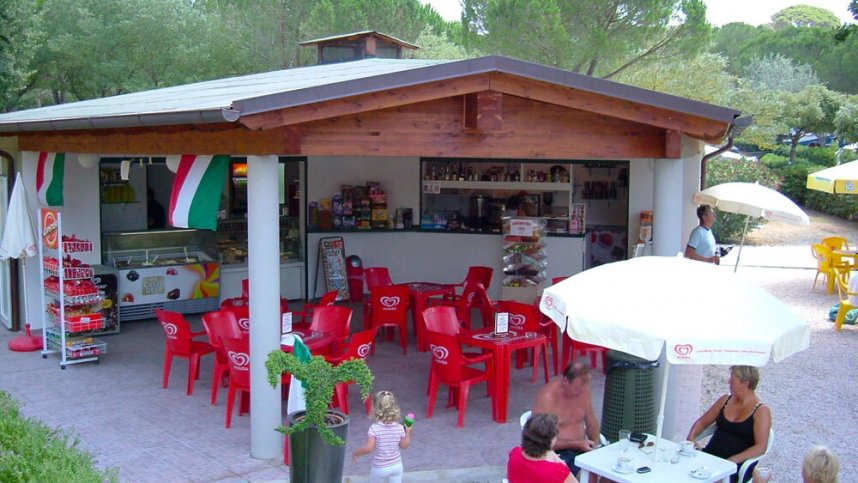Three spotless toilet blocks of modern construction are maintained to a high standard with mainly British style toilets and accessible facilities. Some washbasins in cubicles. Excellent facilities for children and babies. Washing machines. Bar. Restaurant. Pizzeria/snack bar/pool bar. Well stocked shop (including local produce). Swimming pools. Tennis. Games room. Bicycle hire. Satellite TV. WiFi over site (charged). Daily entertainment. Only gas or electric barbecues are permitted (communal provided).