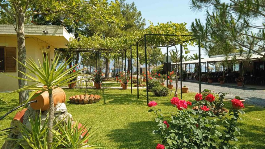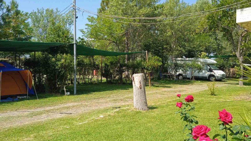 Hedges and colourful shrubs separate the 90 well-demarcated pitches, and all have access to 220V electricity supply connections with some shade offered by the eucalyptus, poplar and olive trees dotted around the campsite. The campsite has a mini market on-site, a laundry area equipped with two washing machines and a ‘campers kitchen’ if you wish to prepare a quick meal. In the evening, you can treat yourself to a local Greek dinner at the on-site taverna ‘Holevaina’, with a good menu offering local Mediterranean cuisine and seasonal grills.
