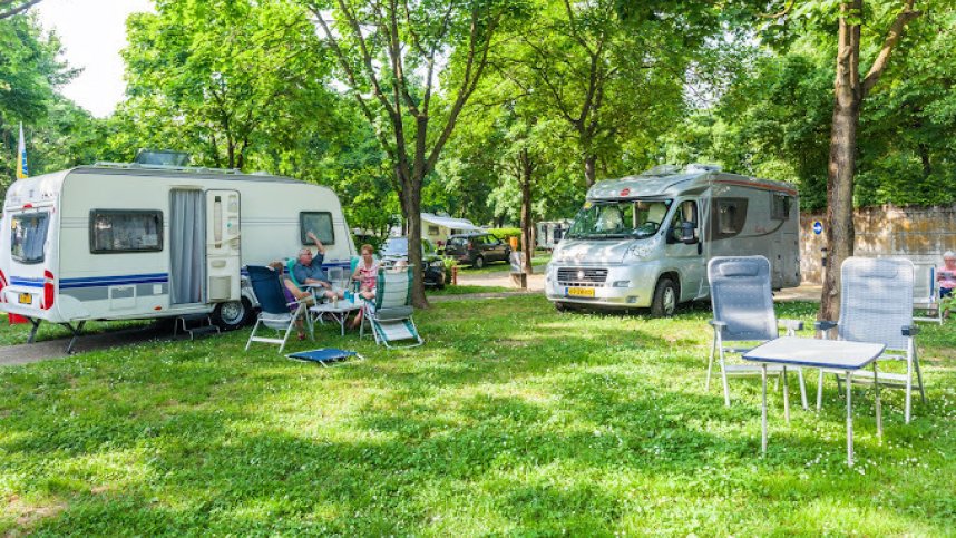 This is a very pleasant site with a difference in that it is paired with a quality hotel close to Vicenza. As such, it is able to offer use of the hotel facilities including the pool, bar/restaurant and spa (charge for spa). The 77 pitches (80 sq.m) are attractively laid out with bricked hardstandings and brick access roads, plenty of shade from trees and privacy from neat and mature hedges. They are smart, clean and equipped with 3/6A electricity. The hotel and site are alongside an autoroute exit, but a tall soundproofing fence along one side of the site minimises its impact. It is peaceful here despite the proximity of the autoroute, and the bus service is brilliant for visiting Vicenza with its Palladian architecture.