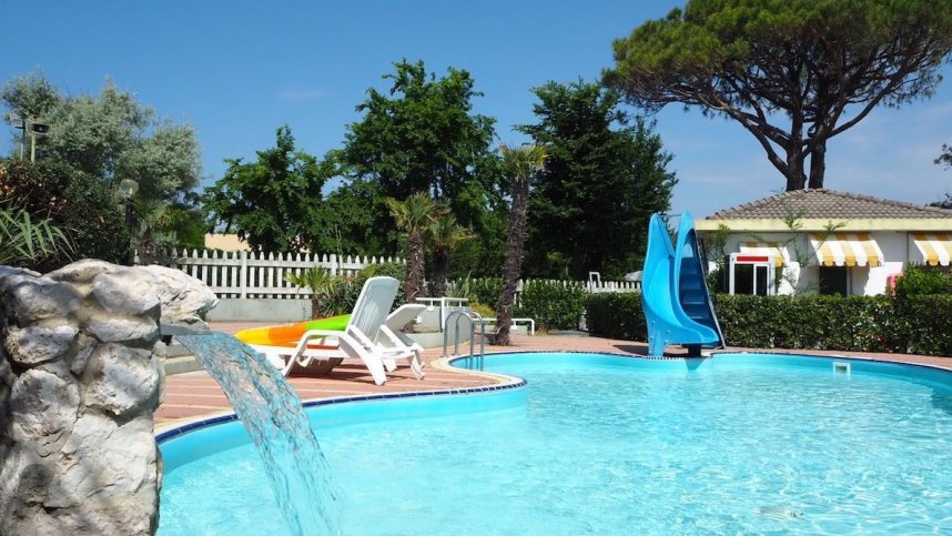 Two modernised toilet blocks are kept very clean and have hot water throughout. Accessible Facilities. Washing machines. Bar, restaurant and pizzeria, shop (all season). Swimming pool (1/5-15/9). Jacuzzi. Playground. Children’s club. Entertainment and activity programme. Excursion programme. Direct access to the beach. Fishing. Bicycle hire. Mobile homes and apartments to rent. WiFi over site (charged). Dogs are not accepted.