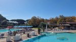 Encircled by hills, Baia Azzurra is a cool green site with lots of trees. There are 260 pitches with 180 average sized, grassy pitches for touring units. These are flat, shaded by tall trees and some have artificial shade. All have 3A electricity and eight also have water and drainage. This is a neat site with a regular layout and amenities are away from the pitches. The focal point of the site is the lagoon-shaped pool with bridge, modern restaurant and entertainment complex. There is direct access, across a minor road and a 150 m. walk, to the gently sloping sandy beach with plenty of loungers and umbrellas. This beach may be difficult for those with reduced mobility.
