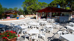 Belvedere Pineta is situated on the edge of an almost entirely land-locked lagoon, 5 km. from Grado on the northern Adriatic Sea. A minor road runs between the site and the lagoon and a bridge over this connects the site with the beach of fine sand. It is a large site with 900 touring pitches arranged in regular rows with most under shade provided by the many tall pine trees which cover the site. Most are of reasonable size and all have electricity. An area of accommodation to let is to one side of the camping area. In high season a large programme of sport and entertainment for children and adults is organised. With two pools, an area for ball games, tennis courts, minigolf and the beach there are plenty of activities to enjoy. In nearby Aquileia, once the fourth city of the Roman Empire, is one of the world’s most magnificent mosaic floors. Excursions can be made by rail to Venice and other places in the region.