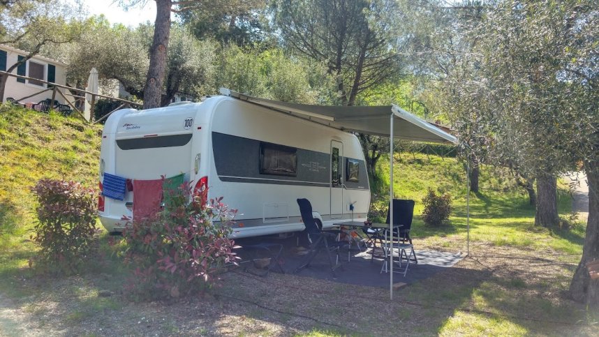 With panoramic views of Lago Trasimeno, Camping Village Cerquestra offers an idyllic retreat for those seeking a tranquil Italian escape. This charming campsite, situated on the border between Umbria and Tuscany, provides the perfect base for exploring the natural beauty and cultural heritage of the region. On-site, there are 61 touring pitches, of which have 6-amp electric hook-up points. While Cerquestra may appear small, its terraced layout ensures ample privacy for campers, thanks to the lush vegetation. Though not directly on the lake, the campsite boasts stunning views of the waters. The higher pitches offer even more spectacular views.