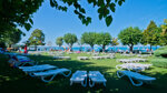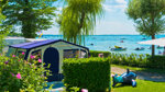 Four modern sanitary blocks are heated, well placed and have free hot water throughout. Three blocks have accessible facilities, one for children and babies. Washing machines and dryers. Motorhome services. Well stocked mini-market, restaurant with lake views, pizzeria with terrace and views, takeaway (19/3-31/10). Beach bar. Pool bar. Outdoor heated swimming pool (26/3-20/10). Large paddling pool with slides. Children’s entertainment programme. Baby club. Play area. Tennis. Fitness suite. Multisports court. Fishing. Free WiFi throughout.