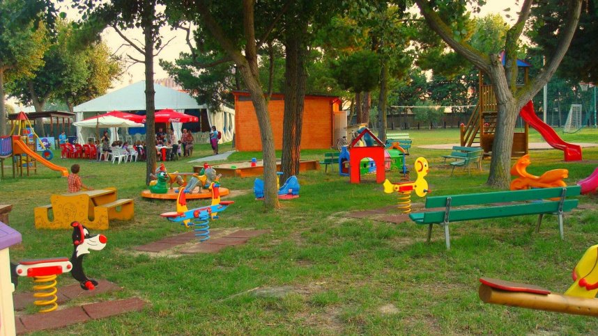 Three sanitary blocks with free hot showers. Accessible facilities. Baby rooms. Motorhome services. Laundry. Bar, restaurant, takeaway, pizzeria, shop (all high season). Swimming pools (hats must be worn) with solarium terrace (Seasonal). Play area. Outdoor fitness area. Tennis. Table tennis, Bicycle hire. Artificial grass football ground. Entertainment in high season. Clubs for children and teenagers. Communal BBQ area, WiFi throughout (charged). Pets are restricted to assigned pitches. Bungalows to rent. Free shuttle bus to Roseto Beach. Security bracelets are compulsory.