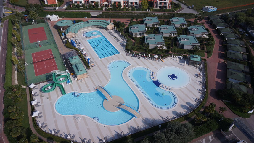 Three toilet blocks are kept pristine and have hot water throughout. Accessible Facilities. Washing machines. Large supermarket and shopping centre, bars, restaurants, cafés and pizzeria (all season; takeaway service 15/5-30/9). Excellent pool complex with slide and spa centre (all season). Tennis. Games room. Playground. Clubs for children. Entertainment programme. Direct beach access. Windsurf and pedalo hire. WiFi throughout (charged). Mobile homes, chalets and 14 eco-apartments to rent.