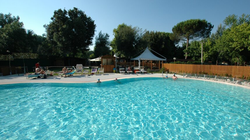 Camping Saint Michael is a pleasant, family owned site and is quietly situated close to the Migliarino National Park and around 600 m. from a sandy beach. Beneath the site’s trees there are 150 level pitches, 30 of which are occupied by seasonal units, all with 4A electrical connections. Around the perimeter there are 30 mobile homes to rent. This site is mainly used by Italian holiday makers and there is plenty to do here in high season with much activity focused on the beach although a great new pool has been added. There is also a children’s club catering for different ages. Tirrenia and Marina di Pisa are 2.5 km. away, with all the amenities of typical Italian resorts. The Massaciuccoli National Park is very close and well worth a visit.