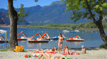 Lake Maggiore is one of the most attractive Italian lakes and Isolino is an impressive site and one of the largest in the region. Most of the 442 touring pitches have shade from a variety of trees. They vary in size, all have 6A electrical connections, 216 with water, drainage and satellite TV, some with lake views. The bar and restaurant terraces overlook the very large, lagoon-style swimming pool with its island sun deck area, water games and a canyon river, and stunning views across the lake to the fir-clad mountains beyond. Often the social life of the campsite is centred around the large bar/terrace which has a small stage inside, sometimes used for musical entertainment.