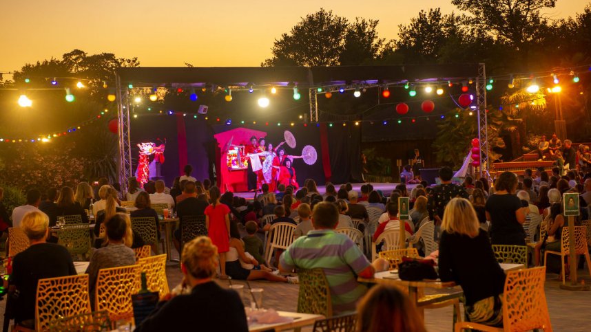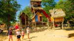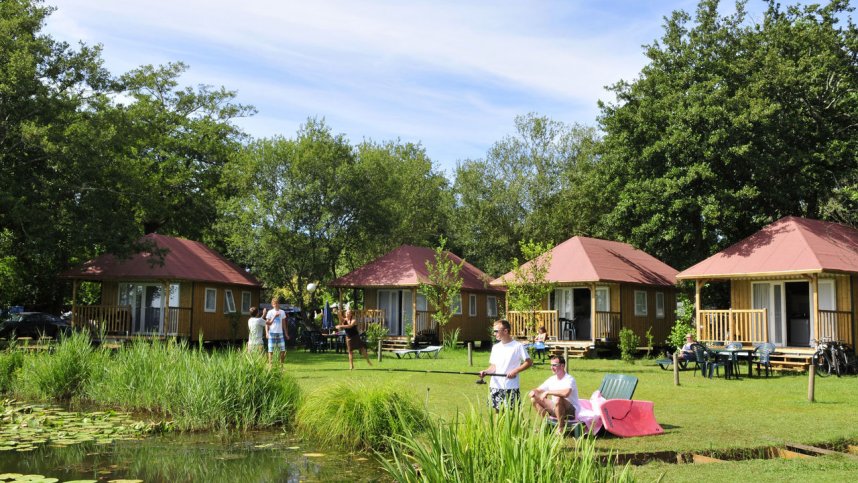 La Paillotte, in the Landes area of southwest France, is a site with a character of its own. It lies beside the Soustons Lake only 1.5 km. from Azur village, with its own sandy beach. This is suitable for young children because the lake is shallow and slopes gradually. All 310 pitches at la Paillotte are mostly shady with shrubs and trees. The 75 pitches for touring vary in price according to size, position and whether they are serviced. La Paillotte is an unusual site with its own atmosphere which appeals to many regular clients. The campsite buildings (reception, shop, restaurant, even sanitary blocks) are all Tahitian in style.