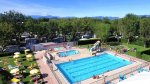 Five toilet blocks in total, of which two are for touring units and a mix of squat and British style (a small charge is made for hot water and showers). Accessible facilities, Private family bathrooms to rent. Motorhome services. Bar, restaurant/pizzeria. Shop. Games room. Adventure and play areas. Outdoor swimming pools (May-Aug). Beach bar. Children’s pool. Sports field. Bicycle hire. Entertainment and activity programme (high season). Direct access to lake. Mobile homes and chalets to rent. WiFi on part of site (charged).