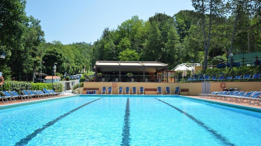 Mugello Verde is a country, hillside site with 100 good sized pitches for motorhomes and caravans and smaller pitches for tents. All have 6A electricity. Some are on flat ground; others are on steep terraces where mature trees provide shade. The big attraction here is the site’s proximity to the international Mugello racing track, just 5 km. away. It is used by Ferrari for practice runs and is also an international car and motorcycling track. The site has a pleasant, open feel and the accommodation for hire does not impinge on the touring area. The on-site restaurant serves food at reasonable prices, and the large terrace overlooks the pool which is also used by locals. The bar has a TV, and the local racing is covered fairly constantly. English is spoken at reception where much tourist information is available. A good site, particularly for motor racing enthusiasts, and there are also mobile homes for rent.