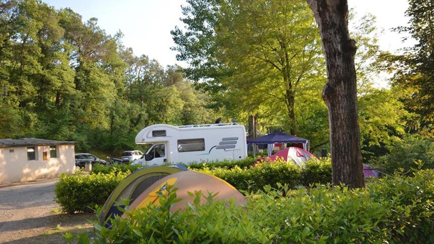 Two toilet blocks are well positioned and the facilities are clean with mixed British and squat style WCs. Hot water throughout. Accessible facilities. Laundry facilities. Shop. Restaurant/bar and pizzeria (all season). Swimming pool (25/5-22/9; no paddling pool). Play area. Tennis. Free WiFi on part of site.