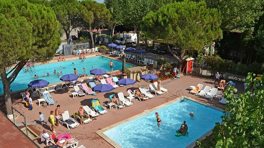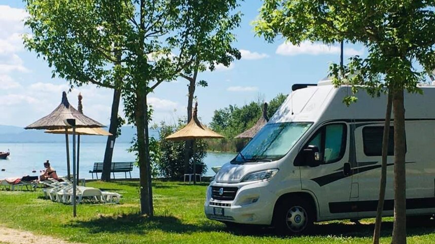 Situated on the north side of Lake Trasimeno, close to two of the lake’s islands, Punta Navaccia is run by the three ebullient Migliorati sisters. It is a large site with 400 flat, shaded touring pitches (with 6A electricity), mostly near the lakeside. The site is adjacent to a soft sand beach and has a dock with facilities for mooring and launching your boat. The hub of the site is bustling with a full animation programme for children and adults. A huge amphitheatre stages entertainment and is located close to all the other services. This is a great and very Italian site where families will have fun at reasonable prices.