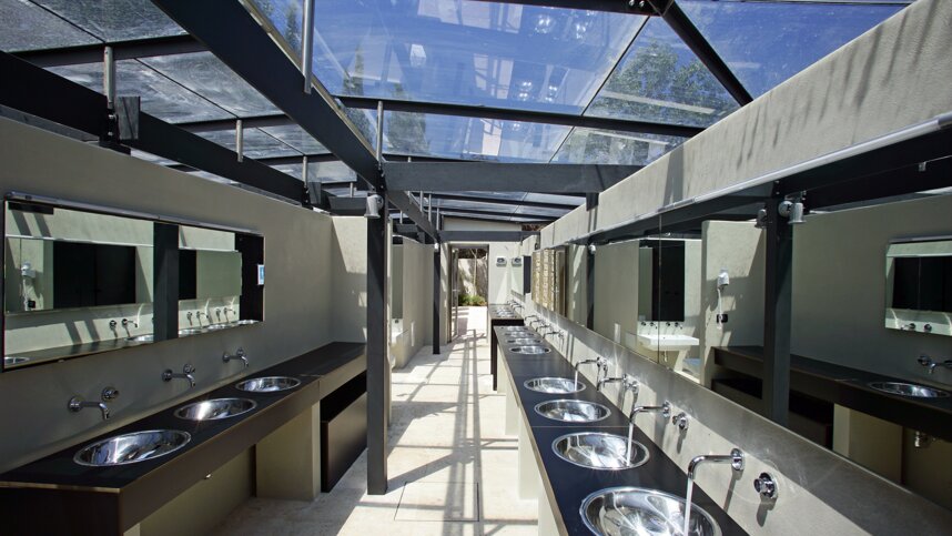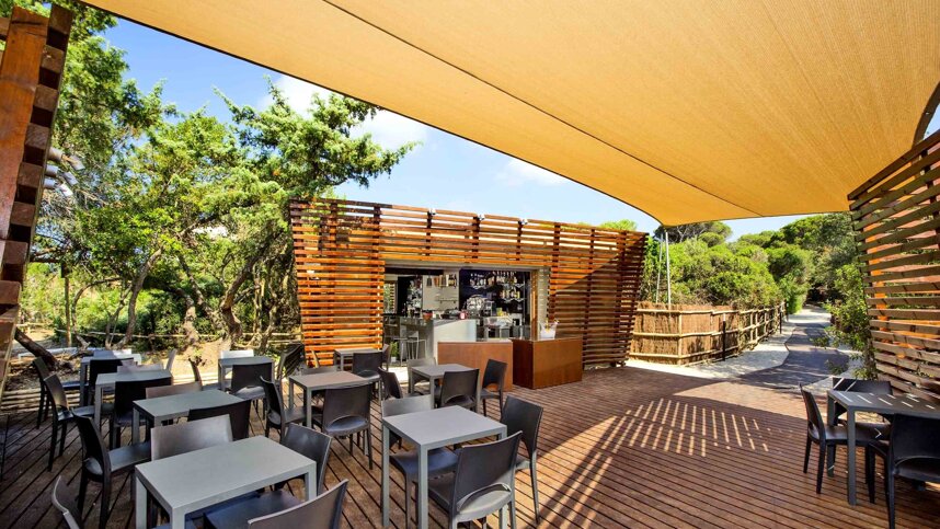 Sanitary facilities include private cubicles and accessible facilities. Laundry facilities. Supermarket and other shops, bar, restaurant and takeaway (all season). Swimming pool with whirlpools (from Mid April). Pool bar. Two children’s pools. Tennis. Sports Courts (Padel - Beach Tennis/Volley). Play area. Bicycle hire. Windsurfing School. Free WiFi over part of site. Miniclub (Mid May - End August). Entertainment and activity programme (Mid May - End August). Direct but awkward access to beach 300 m. Brick Bungalows and Glamping tents (1-6 People).