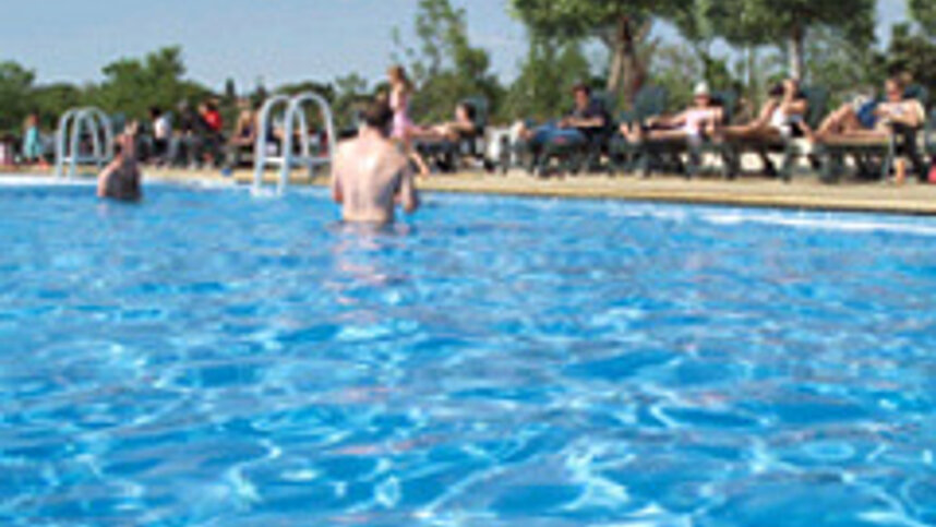 Two toilet blocks with British style WCs and showers. Good accessible facilities. Baby baths. Washing machines. Motorhome services. Well stocked supermarket (closed in winter). Large restaurant/late night bar with DJ plus pizzeria with terrace and poolside bar (high season). Swimming pool and jacuzzi. Huge TV screen. Evening entertainment/disco and regular themed parties. Play area. Free WiFi over site. Travel information.