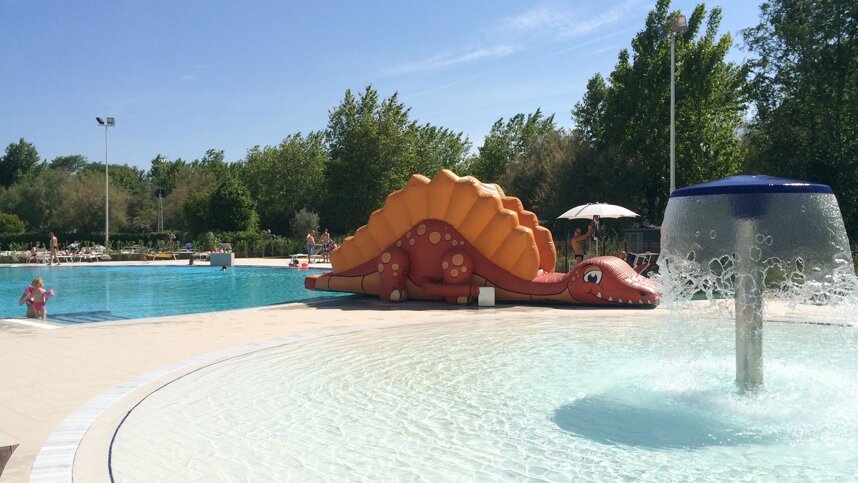 This quietly situated site, about 8 km. north of Ravenna, has everything required for a happy and active family holiday. Tall, mature trees mark out pitches and give excellent shade in all parts. Some 400 pitches have 6A electricity and satellite TV connections. The private beach is about 100 m. from the centre. The campsite’s own beach has a bar with snacks and beach equipment for hire. The site also has an excellent double swimming pool and many sports and recreational facilities, including a small theatre with nightly entertainment of films and dancing.
