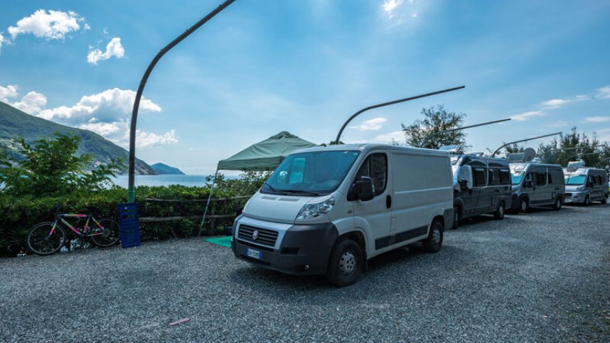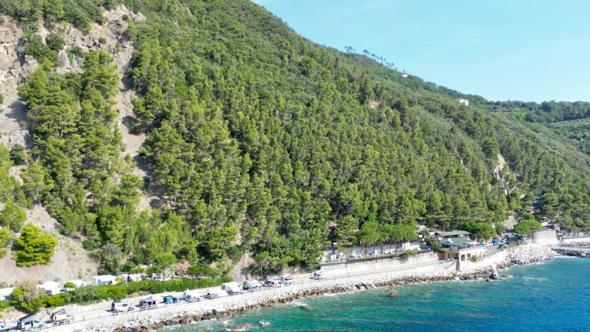Site is between Genova and La Spezia. Note height restriction through site approach tunnel (sign says 3 m. but we managed with 3.2 m unit). However, when approaching from west on coast road there is a 3 m. restriction tunnel so be prepared to make short winding inland diversion. Site well signed from coast road in Moneglia (ignore tunnel sign instructing you to gain consent from Camping Smeraldo to enter).