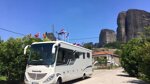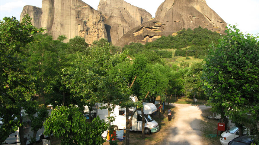 At Ioannina take E92 to Trikala in an easterly direction – steep, winding and very slow moving. At Kalambaka turn left towards Kastraki. In 1.5 km. campsite entrance is on left. Site is well signed along the route.