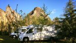 There are around 300 pitches, many quite small and suitable only for tents. 16A Electricity is said to be available for all, but in some cases cables would have to cross the roads. Individual pitches are not marked and you may pitch where you like. There is plenty of shade from mature almonds, acacias and poplars.