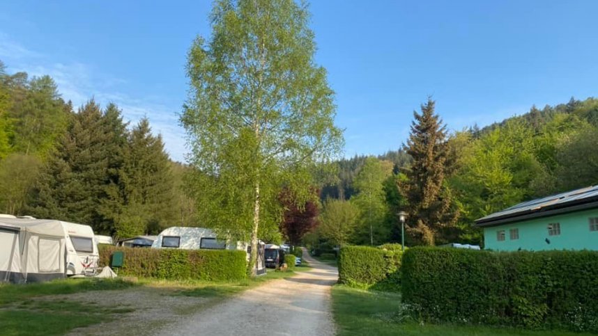 Camping Waldfrieden is surrounded by meadows, mountains and forests in a beautiful green valley in the state of Rheinland-Pfalz (Rhineland-Palatinate). With the green surroundings, you might almost forget that you are camping close to the touristy Saarburg. In just a few minutes by bike, you can be in the cosy, historic city centre with nice restaurants and beautiful sights. On the gently sloping grounds, there are 57 touring pitches electric hook-up point 16amp. There are also 55 seasonal pitches. You are advised to use a category B pitch if you have a caravan and awning. The hedges and bushes that delineate the pitches provide plenty of privacy. Those who would like to come and spend the night without their own touring unit can rent the 3 mountain huts, rooms or apartments.