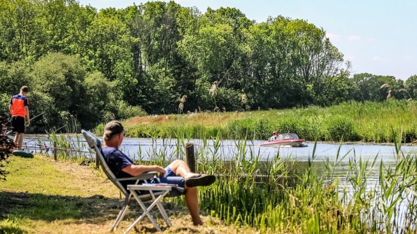 There are around 230 touring pitches, all with 10A electricity, water, wastewater and cable. A separate area provides hardstandings for larger units and motorhomes. There are some views over the Westerwoldsche river and shade in some areas from mature trees. Pitches at the front of the site have a jetty for small boats. To the back of the site is a large expanse of water with a sandy beach. A new 200 km mountain bike trail begins and ends at the site. The only disadvantage is a public road that runs through the site (some road noise).