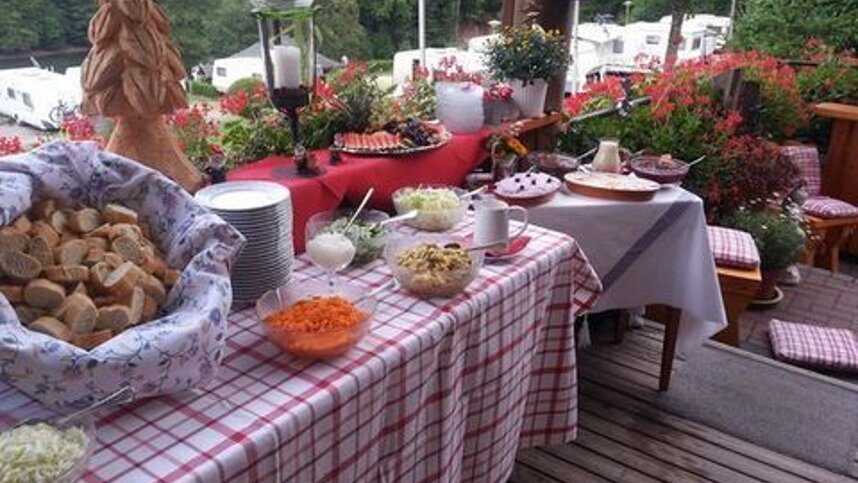 Camping Wiesenbeker Teich, classified in Germany as an eco campsite, is situated in the Harz National Park on the edge of the forest, 2.5 kilometres from Bad Lauterberg. It is on the south western shore of the lake, which is a popular destination, with many opportunities for recreational activities. The terraced family site offers 90 touring pitches (6-16A electricity), divided into 30 for caravans, 20 for motorhomes and 40 for tents. Almost all the pitches overlook the lake and due to its location it is quiet with no through traffic, although a walking route around the lake runs through the site. There are also 30 permanent rental units, including a wooden wigwam settlement, a biker house and caravans. Bed and breakfast and half board are also available.