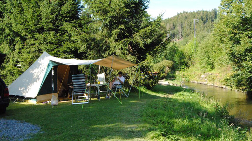 Set by a stream in a valley, Camping Woltzdal is one of the many delightful sites in the Ardennes, a region of wooded hills and river valleys that crosses the borders of Belgium, France and Luxembourg. The site has 79 flat touring pitches, set on grass, amongst fir trees; all with 4A electricity and 20 of which also have water and wastewater. They are relatively open and have views of the surrounding wooded hills. A railway passes the site on the far side of the stream, but there are only trains during the day. This is a family run site with a small, friendly bar/restaurant. The stream running alongside the site is a safe swimming area for children.