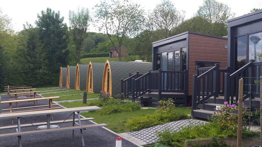 This is a basic, rural site less than a kilometre walk from a pretty Flemish village with a tourist information office, cafés, bars and shops. The site extends up the slopes of Kemmelberg, the highest point in West Flanders. The 230 seasonal pitches are on the upper part of the site, while 50 grass touring pitches are by the site entrance on firm, level ground. There are an additional 20 hardstandings for motorhomes and a separate tent field. All the pitches have 6A electric hook-up available. Cabins and pods are available for hire. English, Dutch, French and German are spoken.