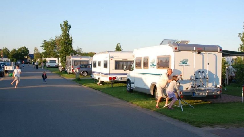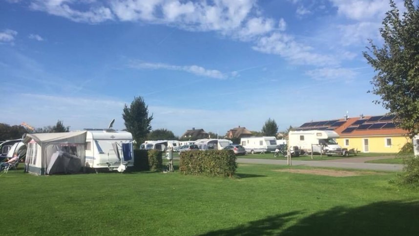 Camping Zur Perle is directly on the North Sea beaches, on an enclosed artificial lagoon, making it an ideal place for a family holiday. It has 260 marked and numbered pitches (203 for tourers with water, 16A Europlug and waste water) on level, grassy fields with some separation by low trees and bushes. To the front of the site is a separate area for seasonal units and motorhomes. Pitches vary in size (75-140 sq.m) and there are 60 hardstandings for tourers. The campsite is close to the Schleswig-Holstein Wadden Sea National Park.