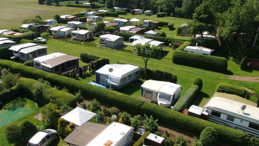 Camping Zur Schönen Aussicht is in the Tecklenburger Land region. The site is surrounded by forests where various hiking and cycling routes start. Within 3 kilometres visitors will find several shops and restaurants. This is a nice site for those who like to pitch on a grassy surface. In addition to the sunny, demarcated pitches with a beautiful view, there are also sheltered pitches that are located a bit lower. In total, the site has 55 grass touring pitches with their own water supply drainage and 10-amp hook-up point. A further 35 are occupied on a seasonal basis.