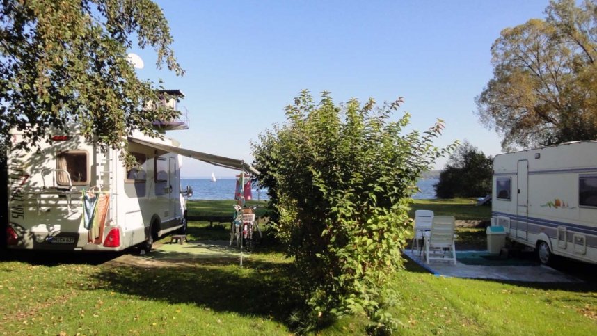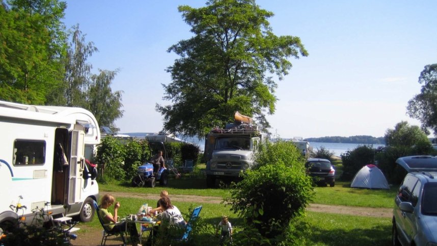 Campingpark Zuruf has a pleasant location beside one of the many lakes in this area, the Mecklenbürger Seeplatte. It is an ideal base for watersports enthusiasts. There are 300 pitches (150 for touring units, all with 10A electricity), with seasonal pitches in a separate area. Touring pitches are on two long fields and two circular fields and there is a separate tent area for youngsters away from other pitches. The level, grassy pitches are separated by high hedges and mature trees, providing useful shade. Some pitches have good views across the water. The site does look a little disorganised and with heavy rain the ground can become muddy.