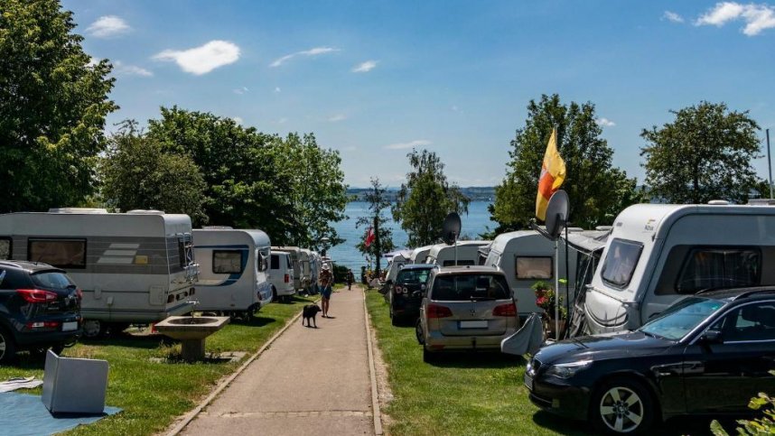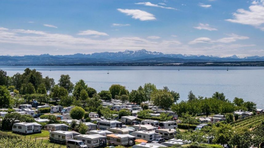 Campingplatz Alpenblick is located on Lake Constance on the outskirts of the beautiful, idyllic winegrowing and fishing village of Hagnau. The central location of our site on the shore of Lake Constance offers you a variety of excursions and destinations to explore, almost all of which you can reach as part of day trips by boat from Hagnau. This is a quiet relaxing site with 180 pitches available, 80 for touring with electric hook-up points. On-site, you will find a small bar and restaurant offering local cuisine, limited entertainment is available, but you will find a children's playground on site. There is direct access to the lake with a bathing area and volley ball court.