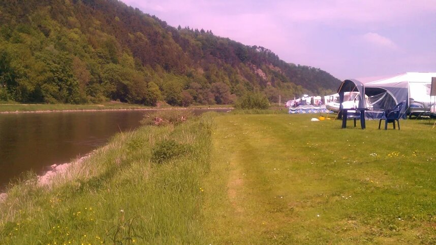 Camping Himmelspforte is surrounded by Hopfenberg, Eckberg and Vogler Nature Park on the beautiful WeserStrom lies the Munchausen town of Bodenwerder. The city centre only 1.5 km away and the site is directly on the Weser. Opposite the site on the left bank of the Weser stretches the Hopfenberg with its rocky outcrops. Its beautiful forest, which adapts its face to every season, forms a picturesque backdrop. To the south and east, the site is surrounded by meadows and fields. Only a few individual farms are located in the middle of this wonderfully quiet landscape.
