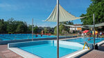 Older style, tiled and clean sanitary building with nicely decorated ladies’ section offers curtained showers with communal changing. Washing machine. Restaurant, Bar, Snack bar, Takeaway food, Outdoor and indoor swimming pool, Childrens play ground, Table tennis, Wifi. Pets allowed.