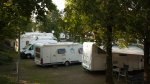 This is an attractively modernised, well managed, municipal city site next to the Cannstatter Wasen fairground. Situated in the outskirts of the city, but only a ten minute drive from the centre and with bus and train links just 500 m. away, it is a very convenient location. Completely fenced, the site is beside the River Neckar, with a walkway into the city, and is surprisingly green, with pretty flower beds, bushes and trees. Even though all the 234 pitches are on hardstanding, they appear green with grass growing through the honeycomb tiles. They are unmarked, have electricity hook-ups and 25 also have water and waste water connections. A separate grassy area for tents is in one corner.